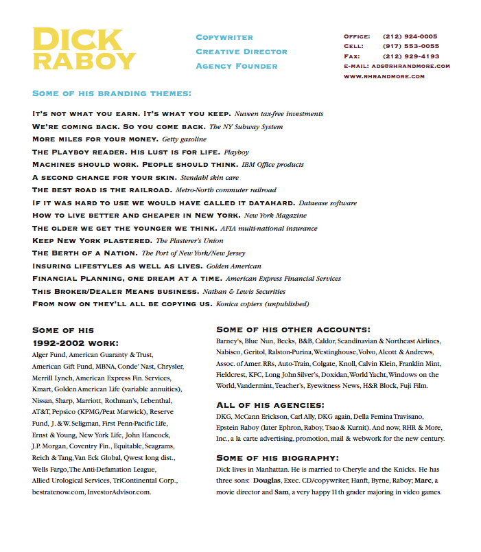— Dick Raboy (2003)